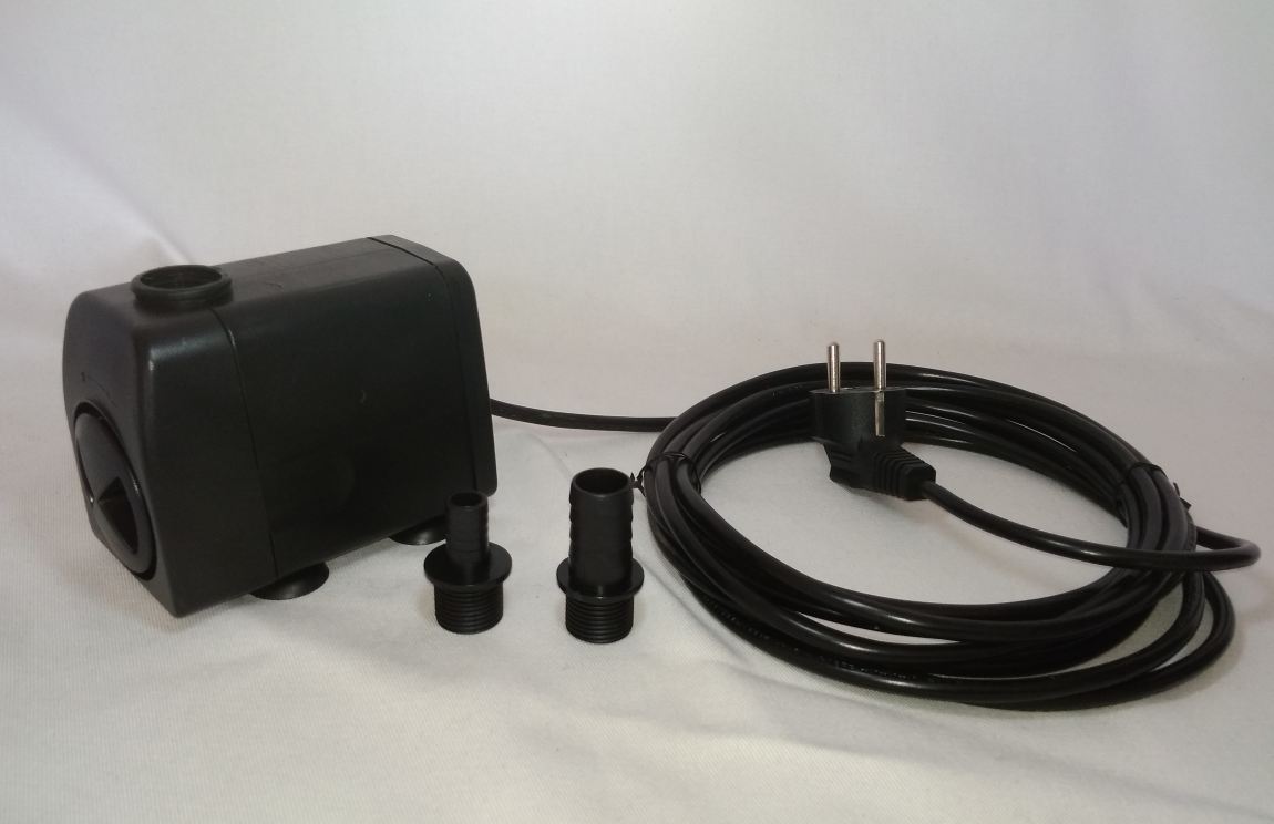 Bomba sumergible para fuente, estanque, acuario, etc. con una elevación máxima de 200 cm. y un caudal de 2000 l/h. Potencia 38w. Dispone de regulador de cuadal en la parte frontal. Cable de 5m. de longitud.
