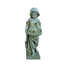 Decorativa figura modelo Heidi de 120 cm. fabricada en piedra artificial, resistente a los elementos climáticos, disponible con acabados en pátina ceniza, ocre y siena.