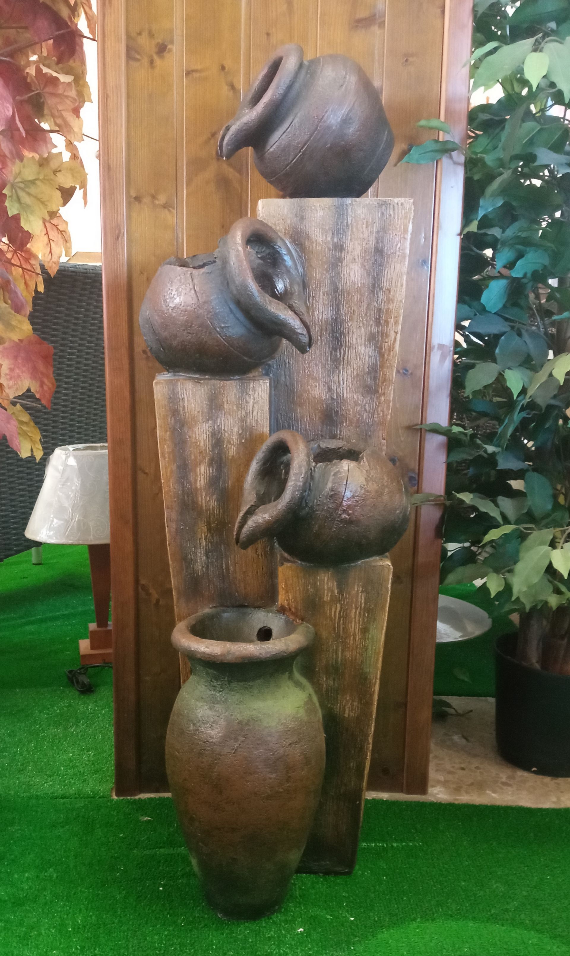 Fuente poliresina modelo ánforas con bomba e iluminación led. Para decoración en interior y exterior.