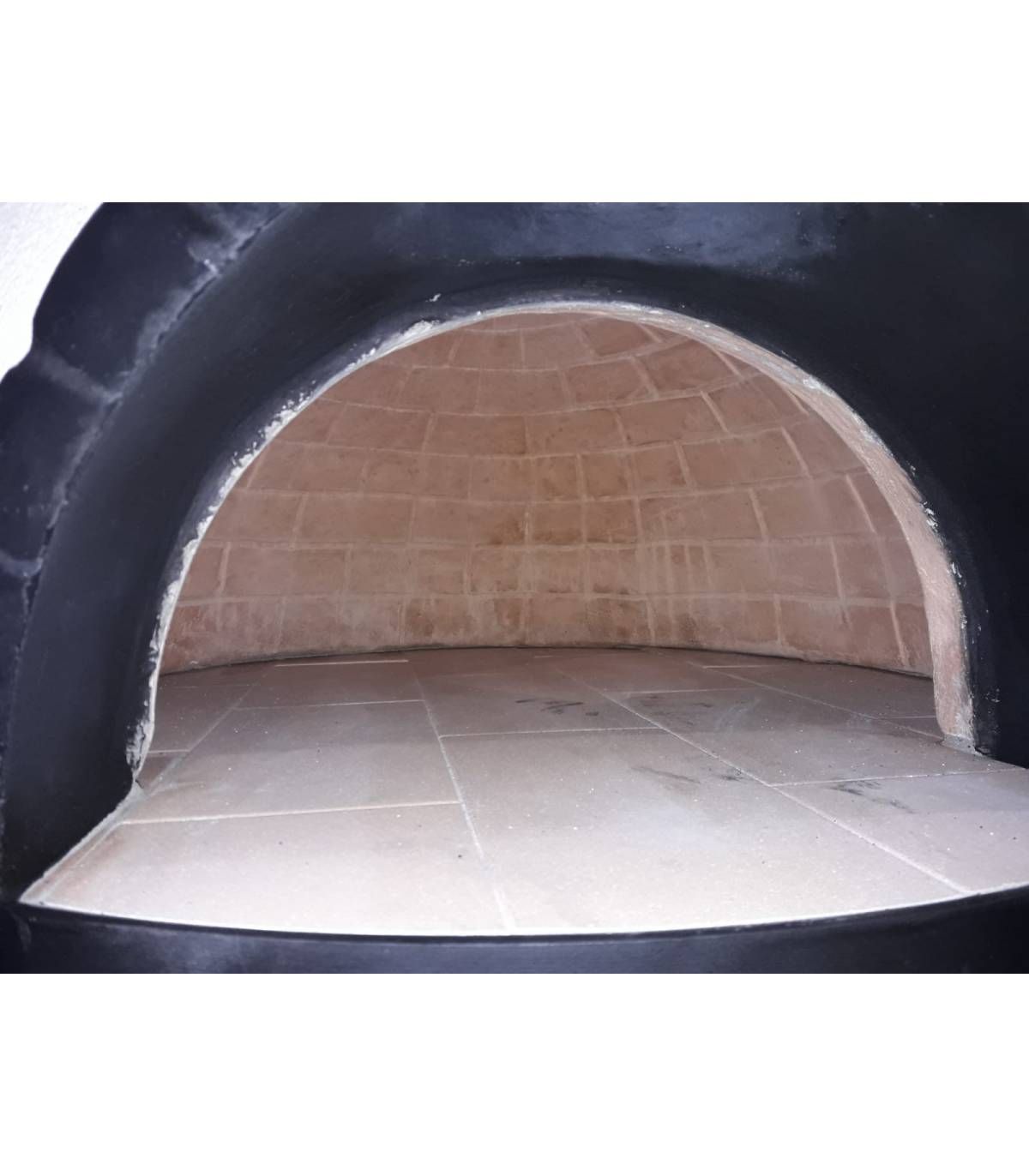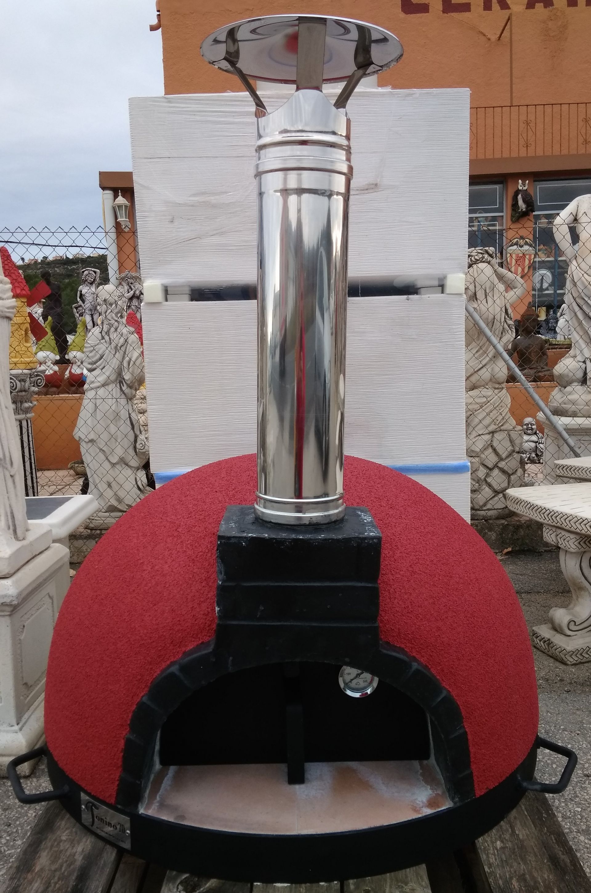 Horno modular fabricado en caolín de alto poder refractario con diámetro interior de 70 cm. y exterior de 90 cm. con base metálica con tres asas para su fácil manejo. Puerta metálica de quita y pon con pirómetro de 5 cm. y asa. Horno totalmente terminado listo para su uso. Se suministra con tubo inox 50 cm. más chino salida humo.