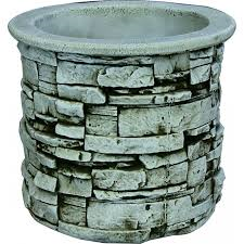 Macetero de jardín modelo lajas fabricado en piedra artificial resitente a los elementos climáticos, disponible con acabado en pátina ceniza, ocre y siena.